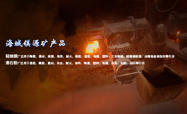海城镁源矿产品有限公司是一家股份制有限责任公司,公司位于中国辽宁省海城市东南山区,这里盛产菱镁矿,滑石矿等矿产品,镁源牌轻烧镁有专业生产轻烧镁36年的质量管理技术,含氧 化镁85%-94%,各种成分物理化学指标可以按照客户要求调整(别名:菱苦土,氧化镁,轻烧氧花镁,镁钙粉等),滑石粉等石粉,我公司轻烧镁可以广泛用于陶瓷,建材,炼钢,炼铁,耐火 ,橡胶,造纸,电缆,塑料,工业除硫,硫酸镁制造,动物食品添加剂等行业,我公司滑石粉广泛用于造纸,橡胶,建材,冶金,耐火,涂料,陶瓷,塑料,电缆,农药,化肥,油田等行业 ,公司距高速公路出入口7公里左右,鲅鱼圈港100公里左右,大连港280公里左右,海城火车站货场20公里左右,集公路,海运,铁路运输于一体的多种便捷快速高效的运输环境,是客户选择 轻烧镁,滑石粉理想之地,欢迎国内外客户朋友洽谈业务,如果对我们的服务和产品质量有不同异议欢迎指导和指正。镁源矿产祝天下所有诚实守信的人们健康快乐,财源厂进!